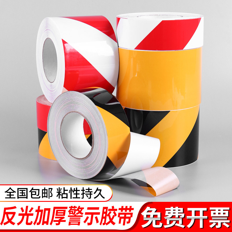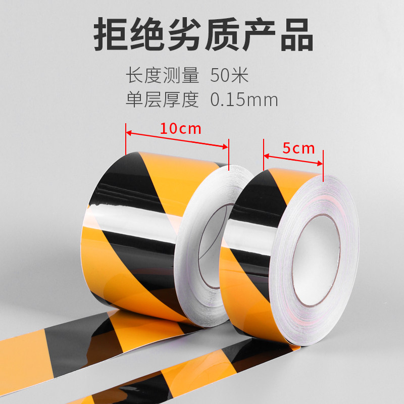 PVC Reflective Warning Warning Adhesive Tape Landmark Zebra Wire Alert Building Construction Site Ground Column Waterproof Abrasion Resistant Area Divided Stickup Safety Production Color Yellow Black Lengthened Adhesive Tape Paper