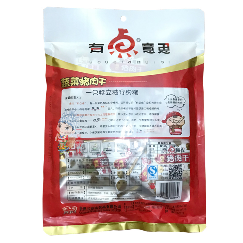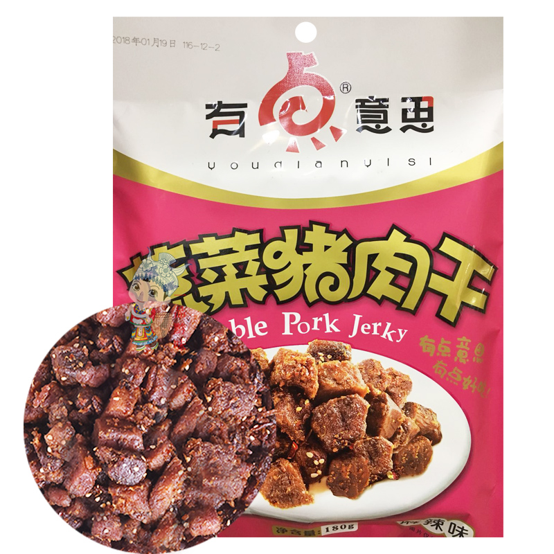 2 bags of Guizhou Guiyang special production Qianfu is a bit mean vegetable pork dry 180g casual snack snack snack