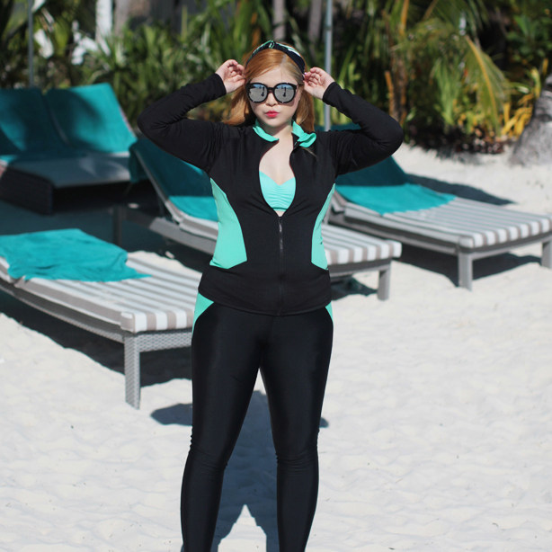 Large size wetsuit sunscreen long sleeve jellyfish suit Swimsuit Women's two-piece trousers four-piece swimsuit Fat MM fat thin