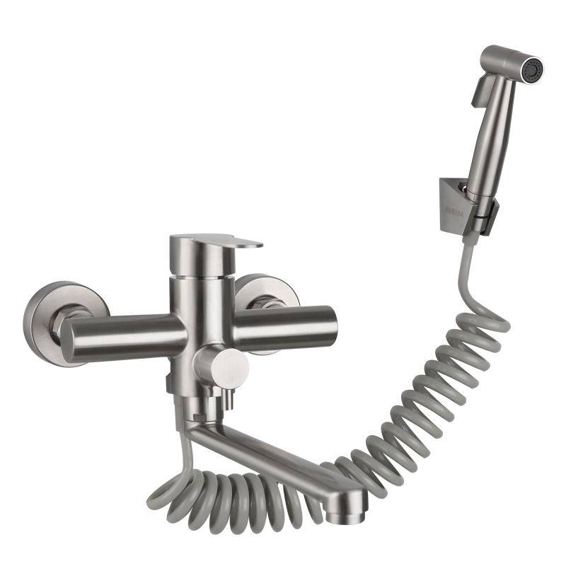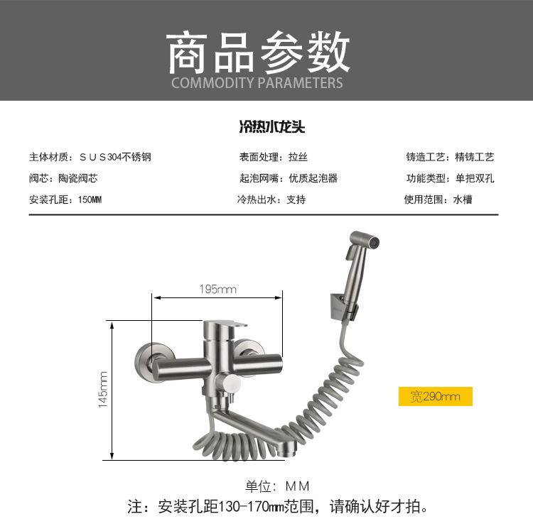 Kitchen Wash Basin Stainless Steel Entry Wall Type Hot And Cold Tap Laundry Pool Balcony Washbasin Water Mixing Valve With Spray Gun-Taobao