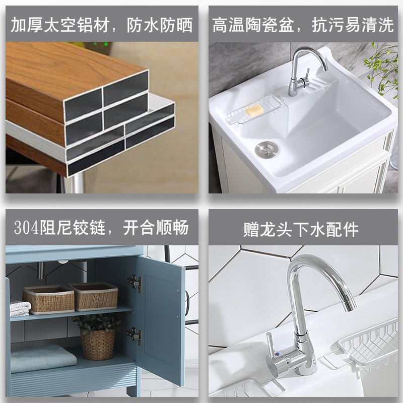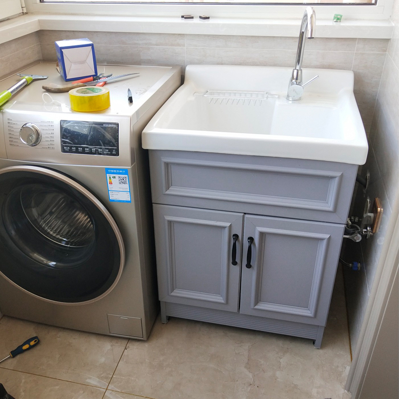 Laundry cabinet combination Simple modern small apartment balcony powder room washbasin space aluminum belt washboard Washing machine cabinet