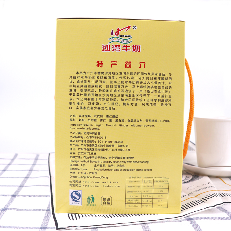 Guangzhou Panyu Shawan Jiang juice Crashed Milk Gift Box 600g Double leather Milk Almond Milk Hand Letter Breakfast for a large gift bag