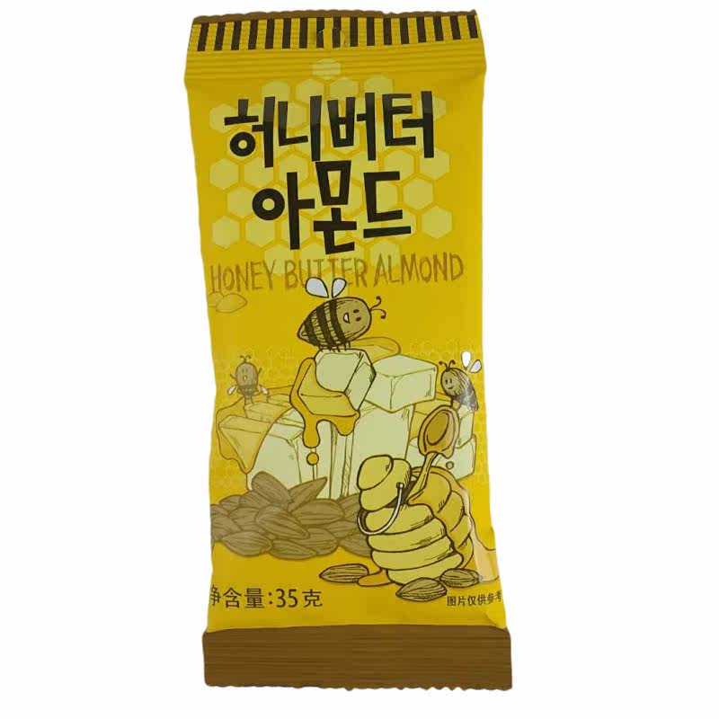 Honey Butter Almonds*5 Packs Honey Butter Cashews*5 Packs Wasabi Flavor (Mustard Flavor) Almonds*5 Packs Caramel Almonds*5 Packs Turkey Flavored Almonds*5 Packs 5 Random 5 Packs (You Can Leave a Message