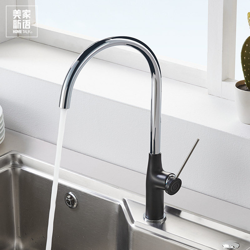 Kitchen faucet wash basin hot and cold faucet sink large elbow rotatable black all copper faucet