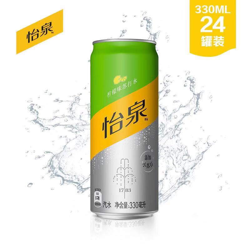 Coca Cola Yiquan Lemon Flavor Soda Water Bubble Water 330mlX24 Canned Whole Case Fruit Flavor Sugar Free Beverage