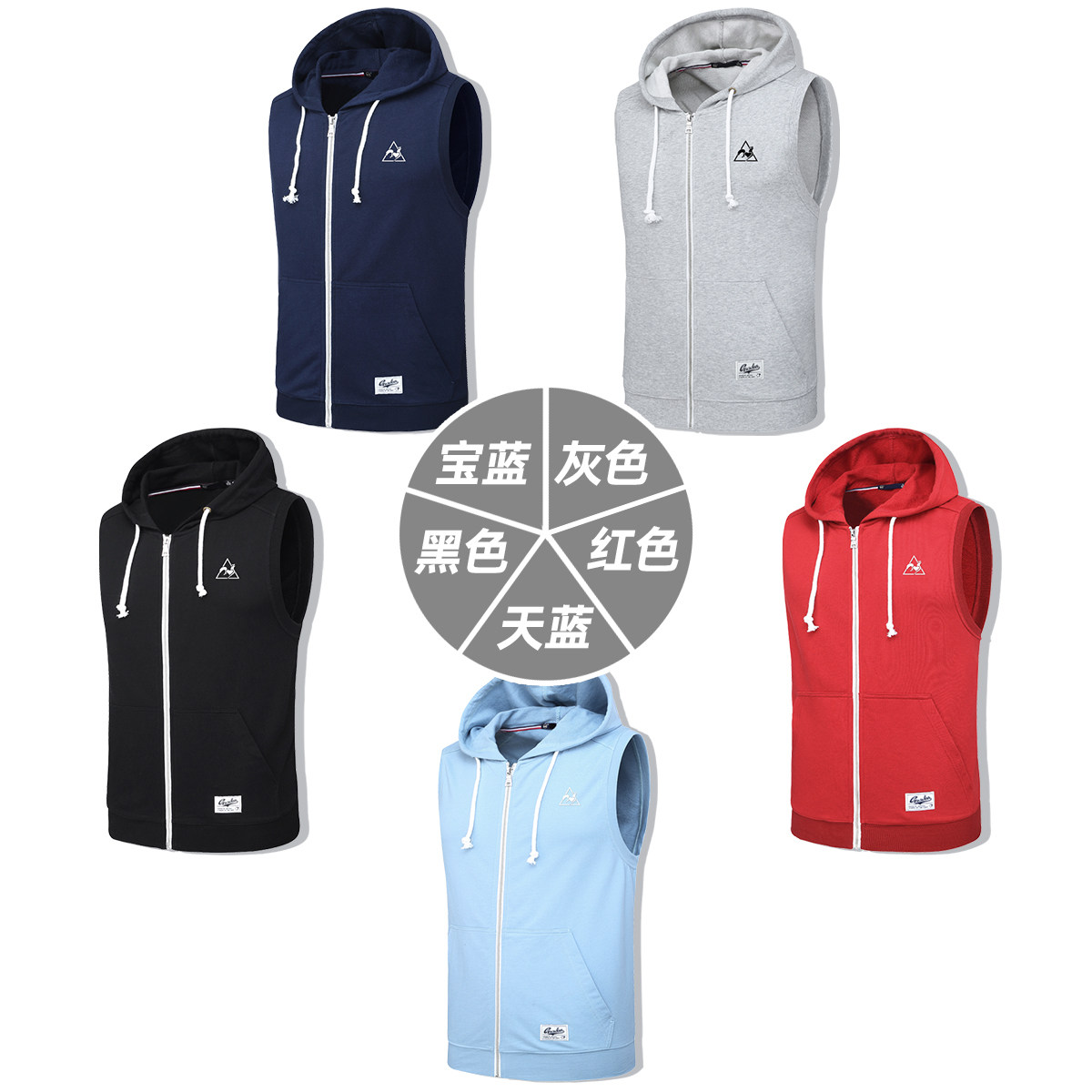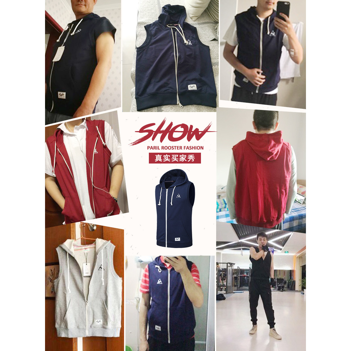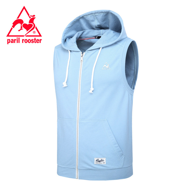 French rooster vest men's summer cotton hooded sleeveless leisure sports jacket outside the horse clip sleeveless vest