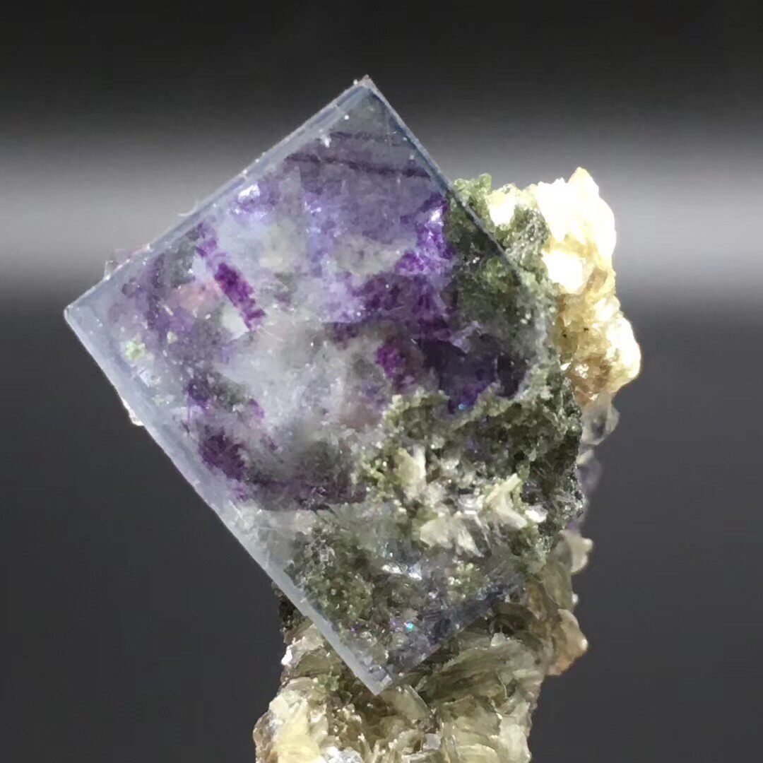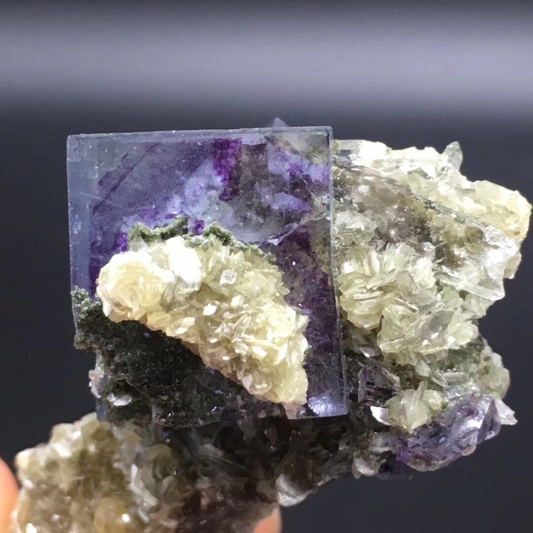 Hunan Yaogang Xian Zi fluorite and Jin Mica symbiotic natural rough mineral specimen ornaments Cat mine teaching science