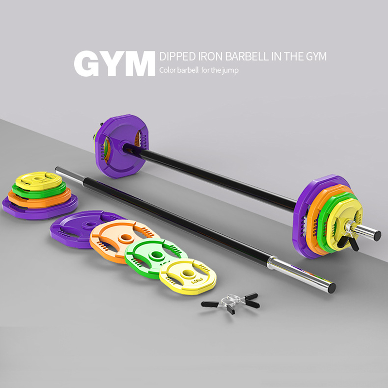 Gym special aerobics barbell ladies fitness home practice hip hip bridge push set color bell plate lever combination