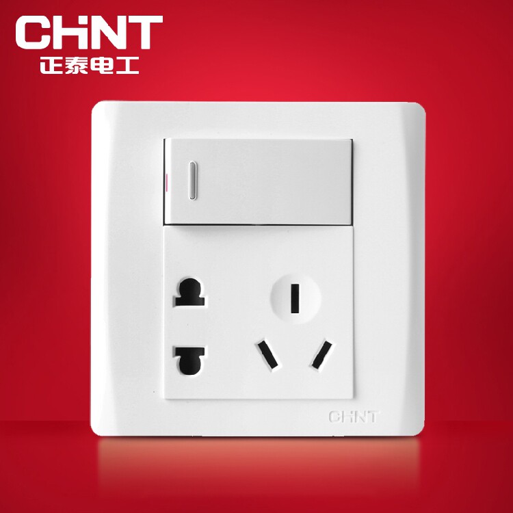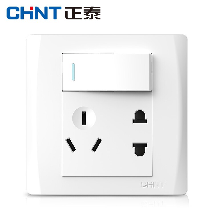 Positive Tai opening single control 5-hole switch socket 86 Type NEW7D1 open 5 hole panel with single switch Two-three eye plug