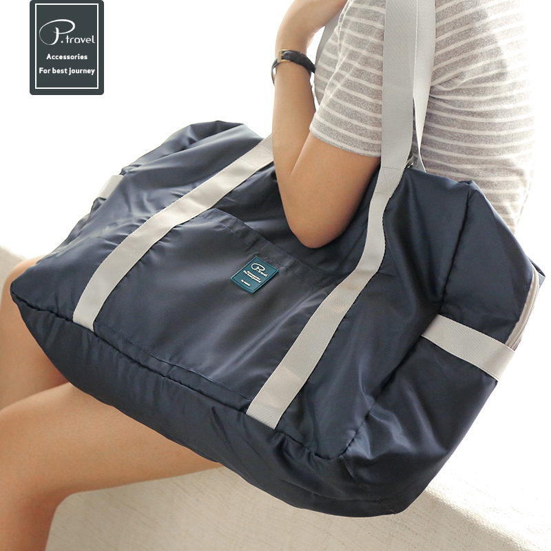 Portable waterproof foldable travel bag large capacity hand-held storage bag can be set trolley suitcase tourist aircraft luggage bag