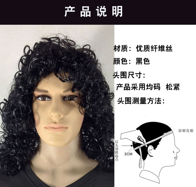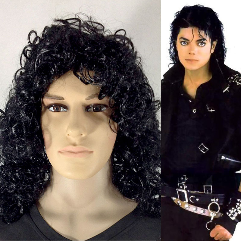 New Rock Wig Mike Jackson Wig Stage Performance Di Bar Dance Hall Nightclub Black Long Straight Male Wig