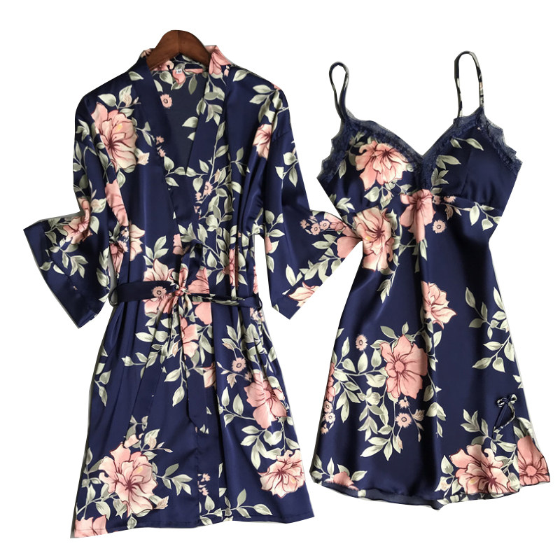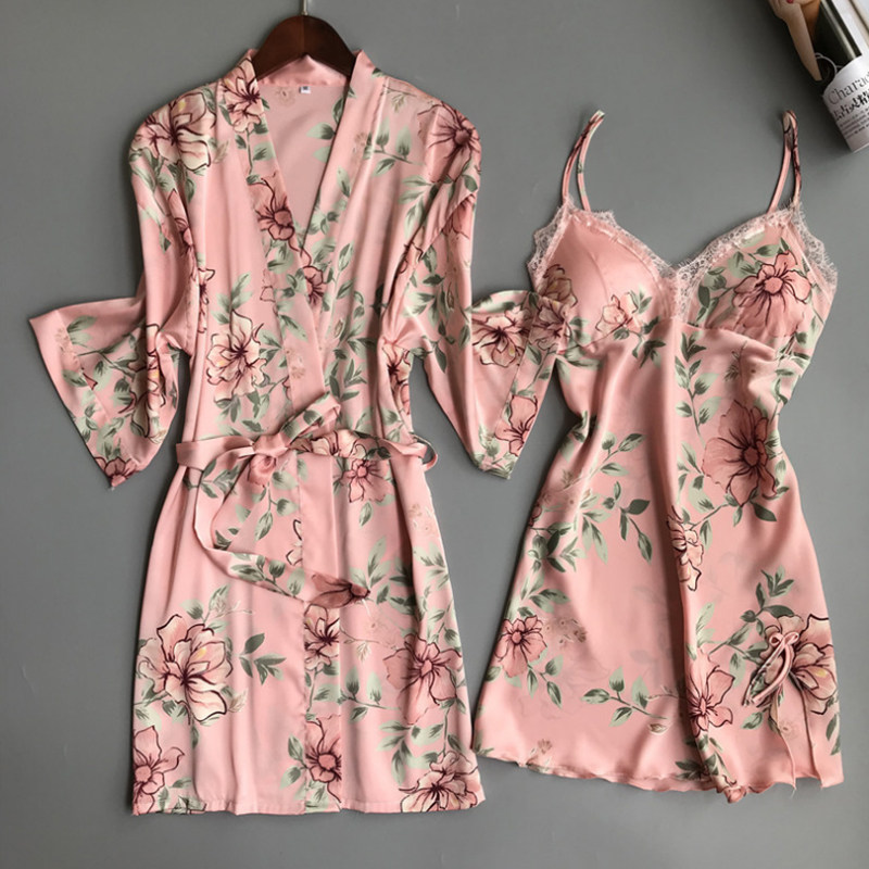 Sexy pajamas Summer ice silk adult two packs with chest cushion gathering small chest thin suspended sleeping skirt Han edition