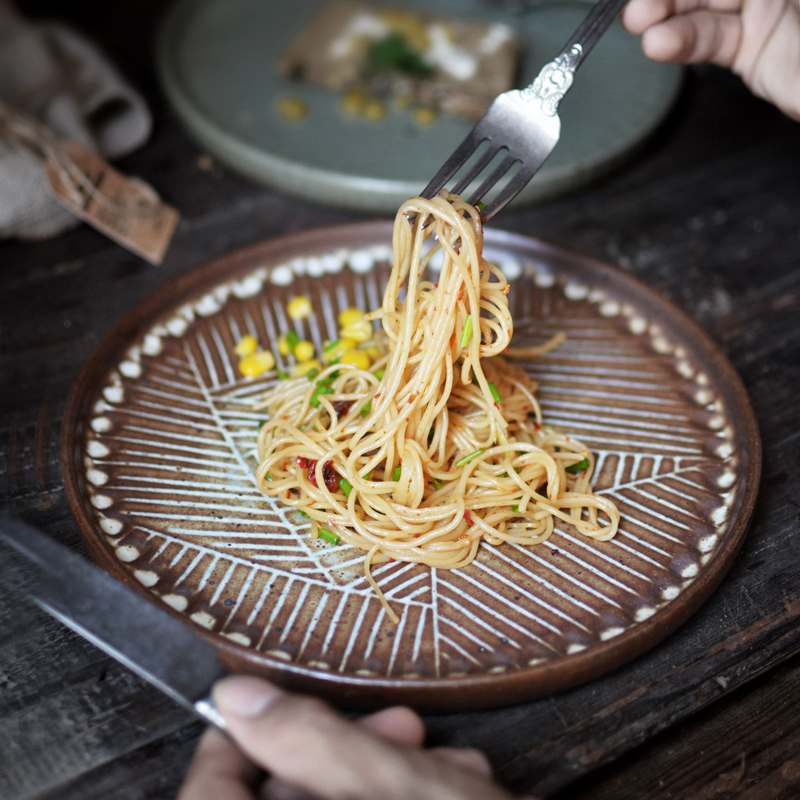 Jingde Zhen Pure Handmade Coarse Pottery Plate Retro Ceramics Home Big Disc Creative Plate West Dining Tray Fruit Pan Flat Tray