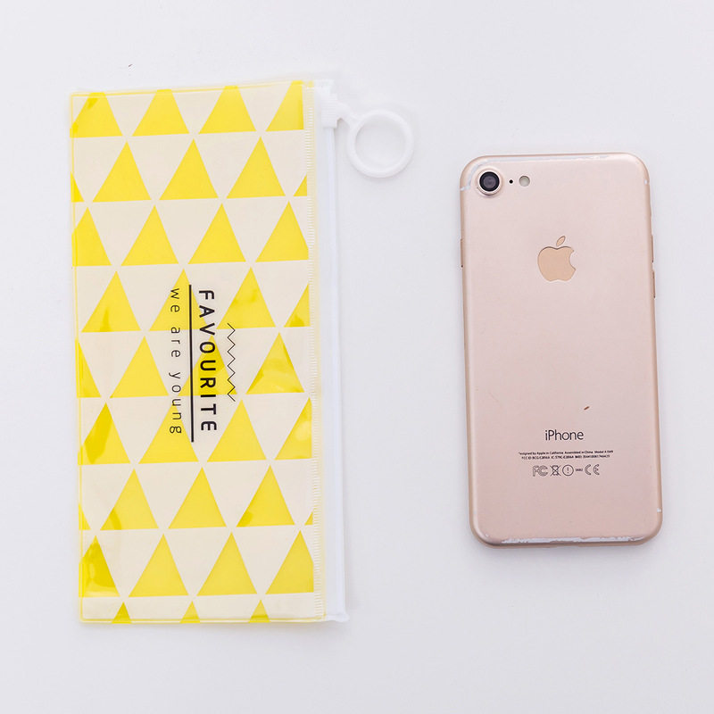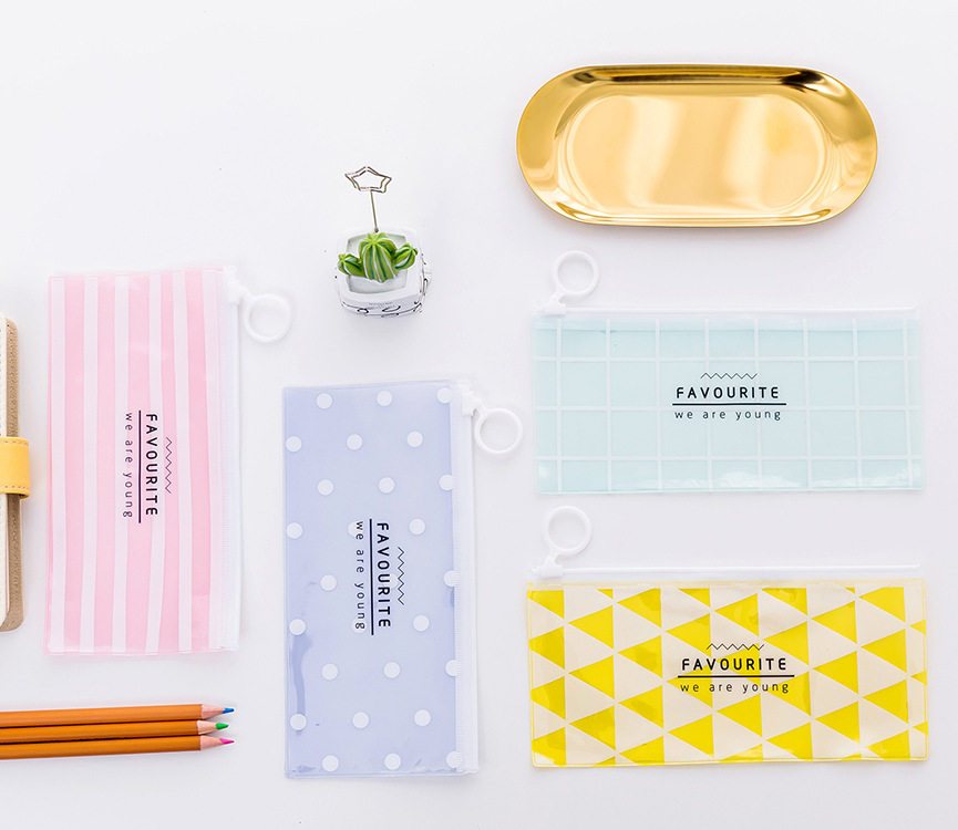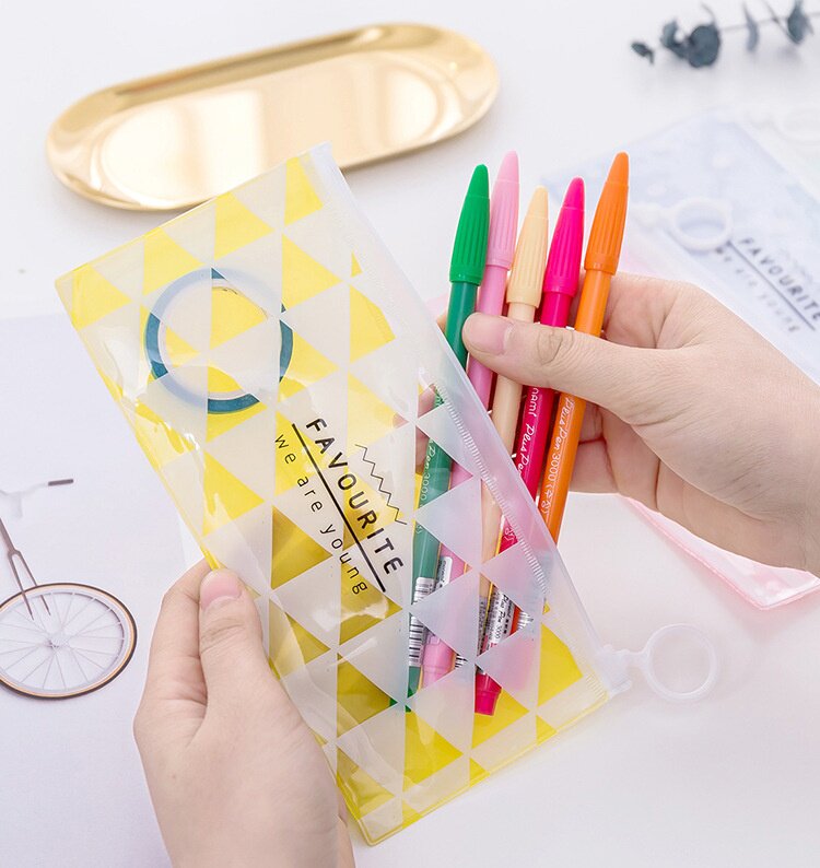 Cute small fresh ring flat pull bag Korean stationery student small storage pen bag Translucent pen bag handbag