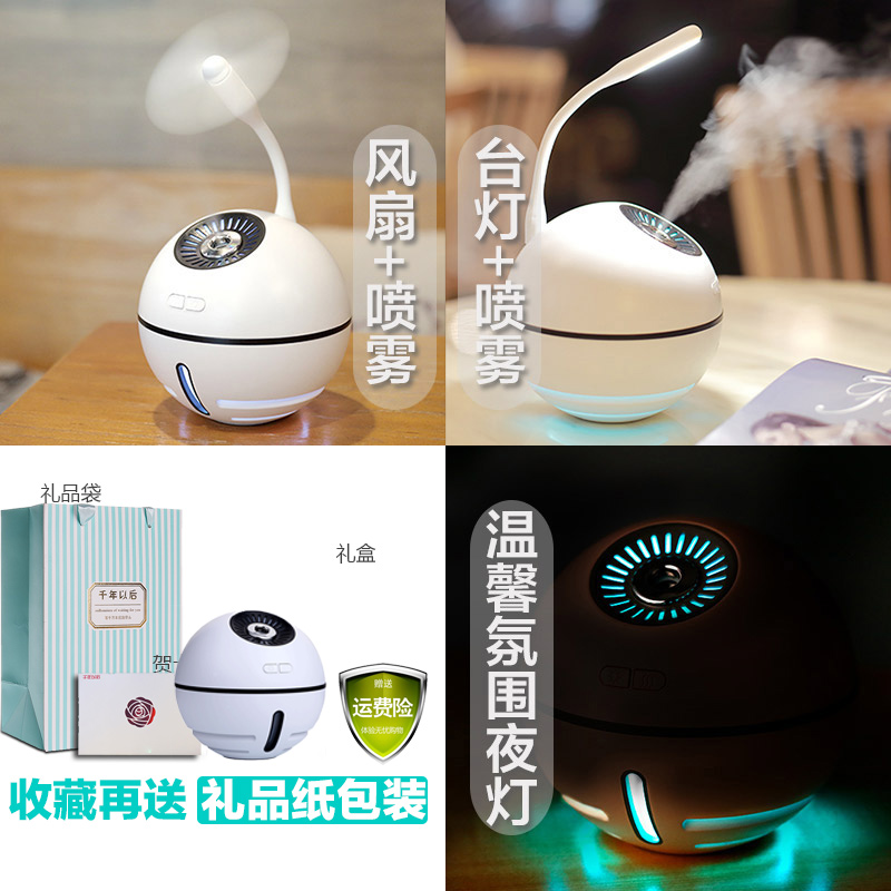 Rechargeable Space Ball Fragrance Lamp Usb Humidifier Wireless With Fan Multifunction Birthday Student Girl Gift Men's Student Dormitory Small Mini Office Desktop Air Spray Three-in-one
