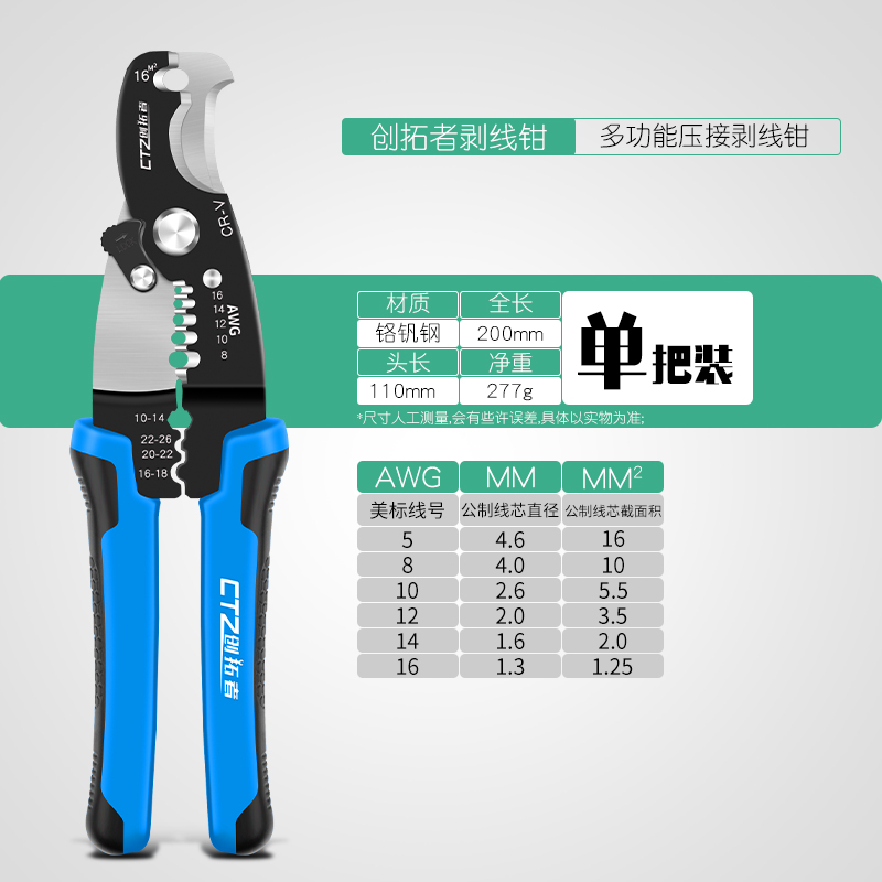 Chuangtuo 6-inch single-color wire stripper Chuangtuo 7-inch two-color wire stripper Chuangtuo 3-in-1 wire stripper Chuangtuo 8-inch double switch port wire stripper Chuangtuo Chuangtuo cable crimping pliers 4-in-1
