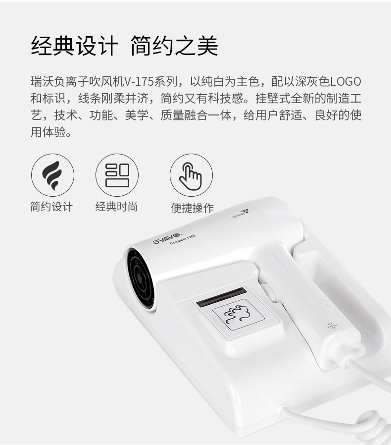 Rewo V-175 LCD screen negative ion wall-mounted hair dryer bathroom hair dryer hotel household hair dryer