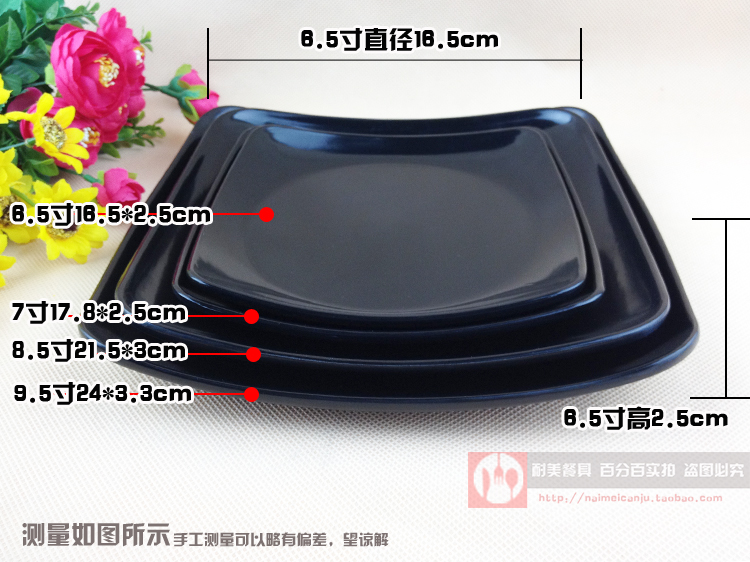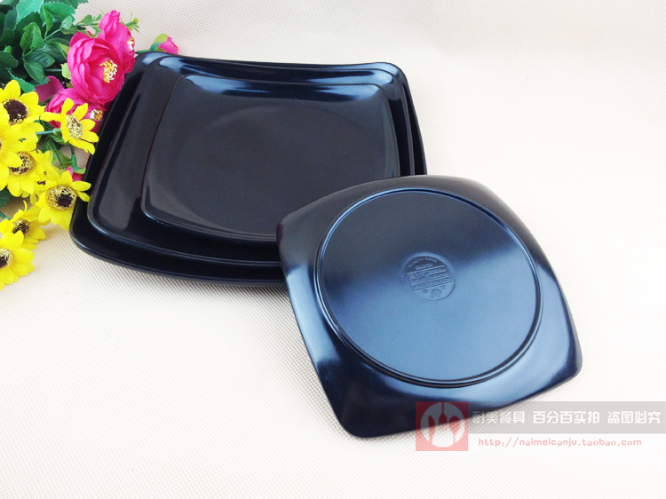 Black Melamine Disc Plastic Saucer Dishes Dish Quadrilateral Count Hearts Disc Hotel Dining Hall Imitation Porcelain Cutlery Dishes