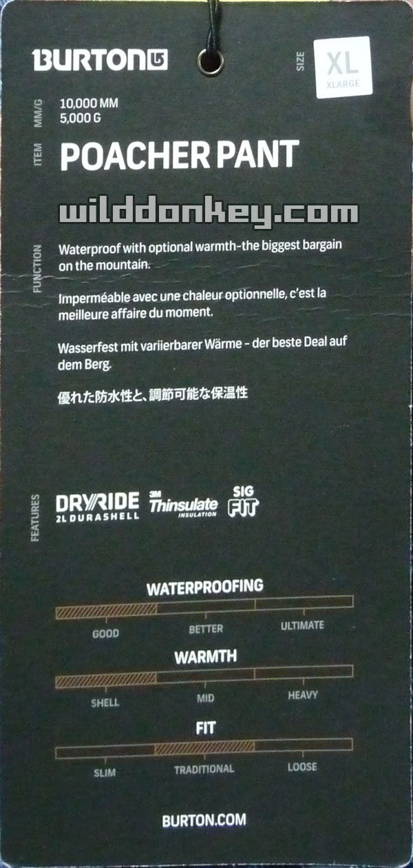 Burton MB Poacher PT 276496 men's ski pants L XL windproof and waterproof and cold-proof
