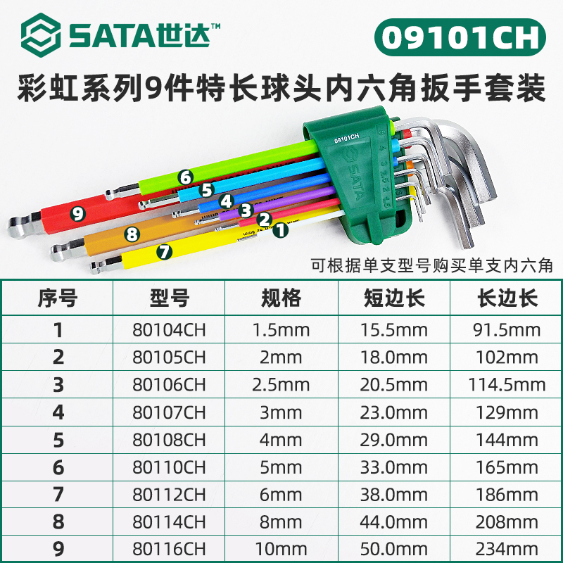 09101CH Rainbow series 9 pieces of special long ball head set 09103CH Rainbow series 9 pieces of special long flat head set 09702CH Rainbow series 9 pieces of special length middle hole