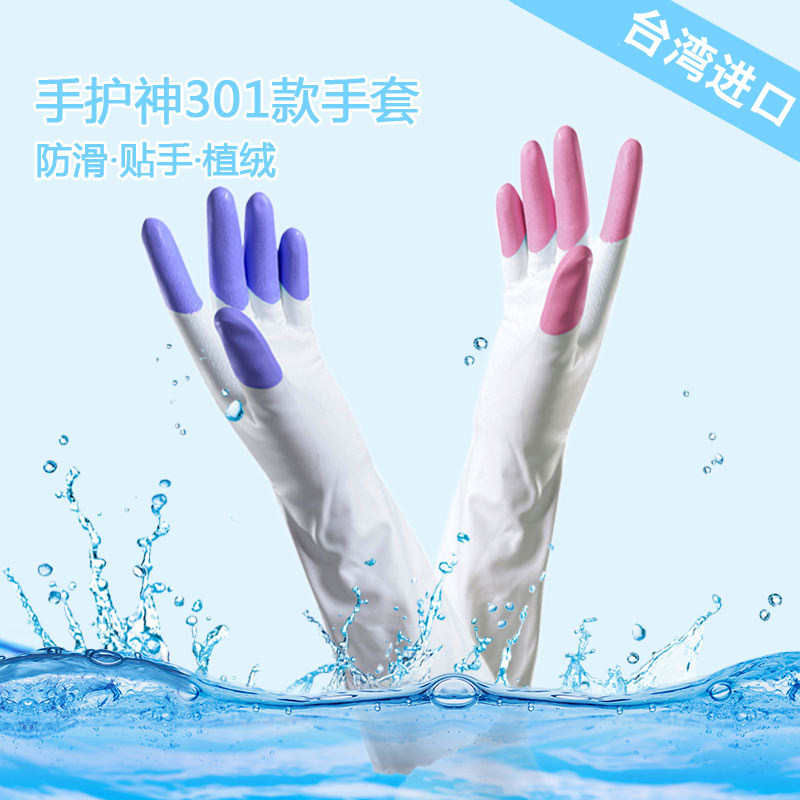 Taiwanese Hand Care God Shark Oil Wash Clothes Dishwashing Kitchen Clean Waterproof Integrated Flocking Durable Women's Business Gloves