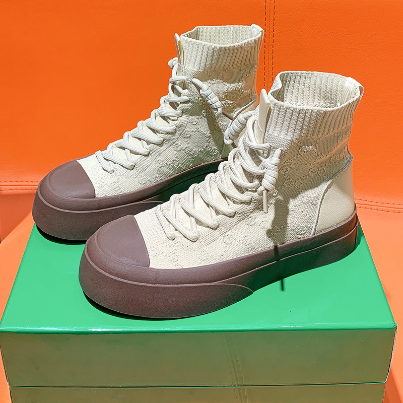Thick-soled high-top shoes new all-match elastic fashion casual sports canvas shoes sneakers knitted socks shoes women's autumn