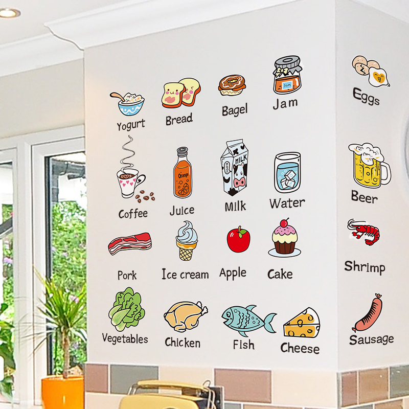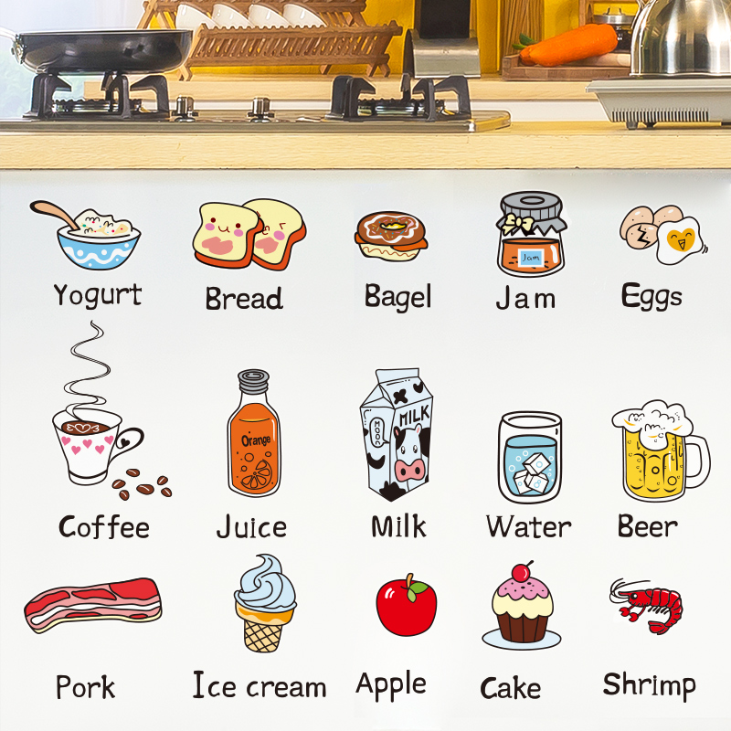 Refrigerator stickers Food stickers cartoon kitchen stickers Eat more stickers Spiritual irrigation full of vitality of the day Plant specimens cartoon food god little girl funny stickers kitchen storage rack red wine bottles