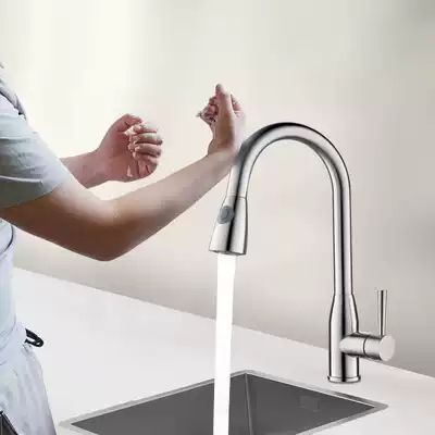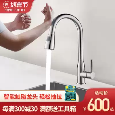Submarine point-touch induction pull-out faucet hot and cold 304 stainless steel washing basin kitchen pool Touch Faucet