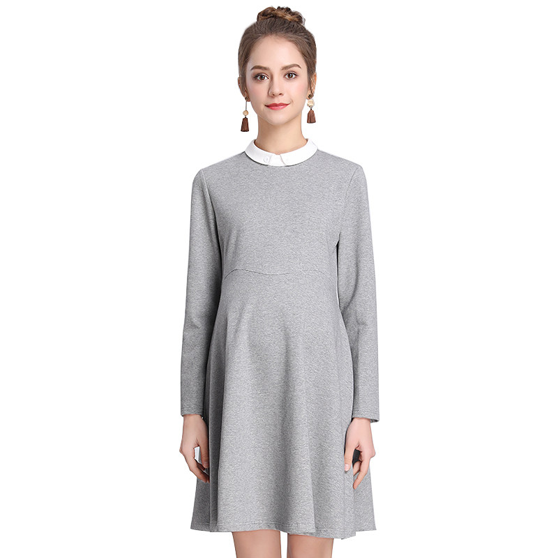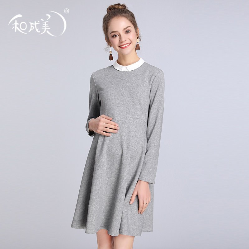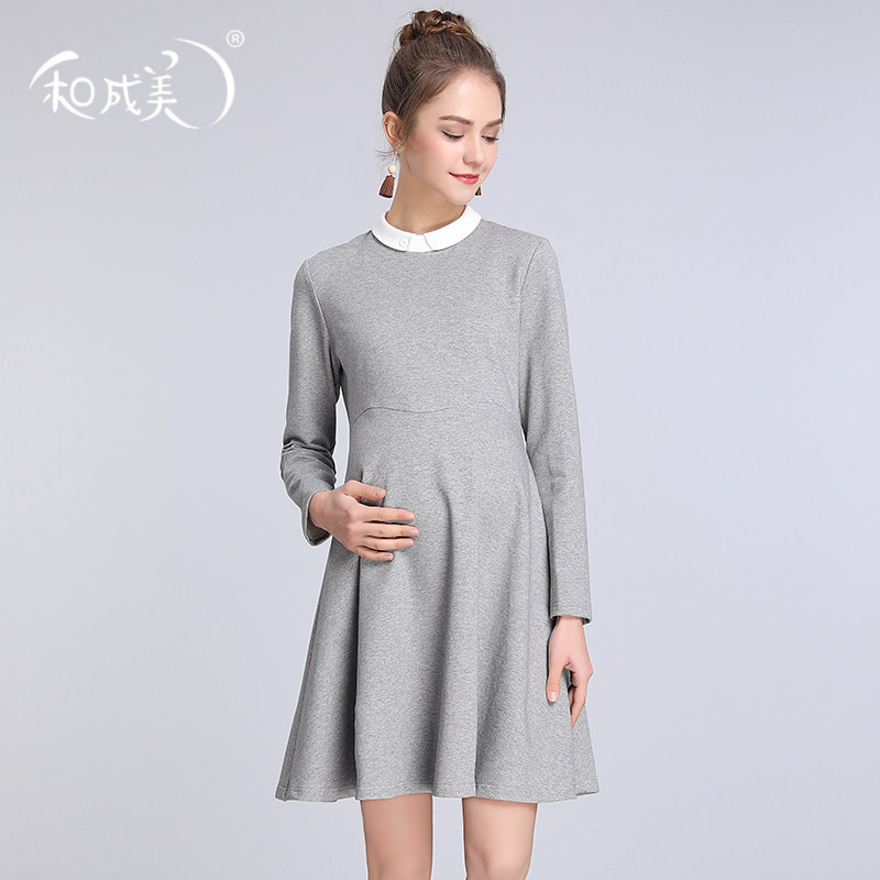 Autumn and winter maternity dress women's mid-length long-sleeved professional interview tooling ol cotton knitted skirt bottoming skirt