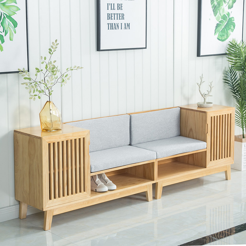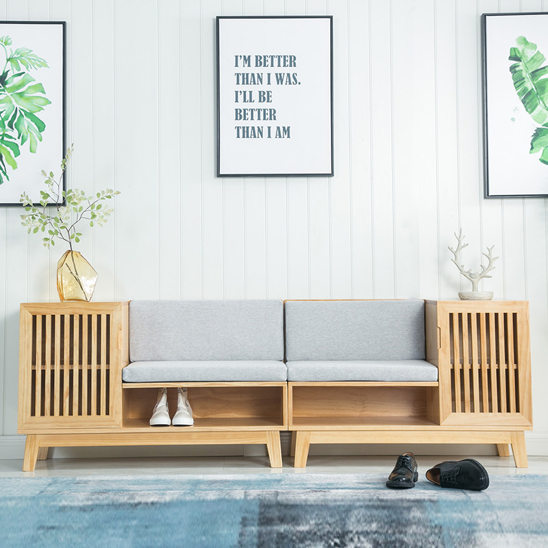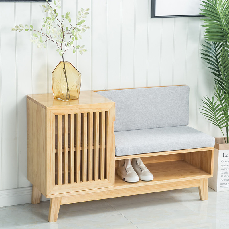 Nordic all solid wood soft bag changing shoe stool modern minimalist home multi-functional shoe cabinet living room entrance storage shoe stool