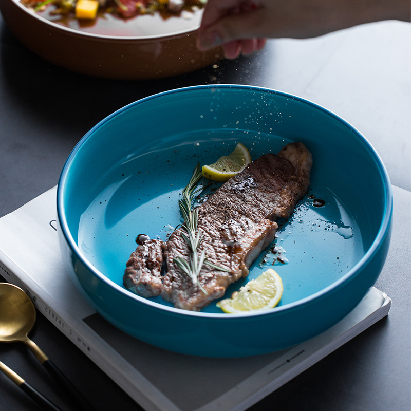 Hufu Nordic Large Size Deep Mouth Dish Soup Pan Home Round Creative Ceramic Water Cooking Fish Dishes Soup Bowls Fahbowl