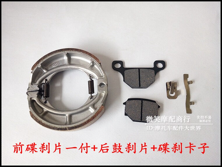 Thickened wear-resistant front drum brake piece Thickened wear-resistant rear drum brake piece Thickened wear-resistant front disc brake piece One pair of front disc brake piece One pair of disc brake clip Shame