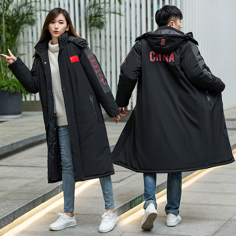 National team athlete cotton coat for men and women over knee plus china cotton hospital winter training coat