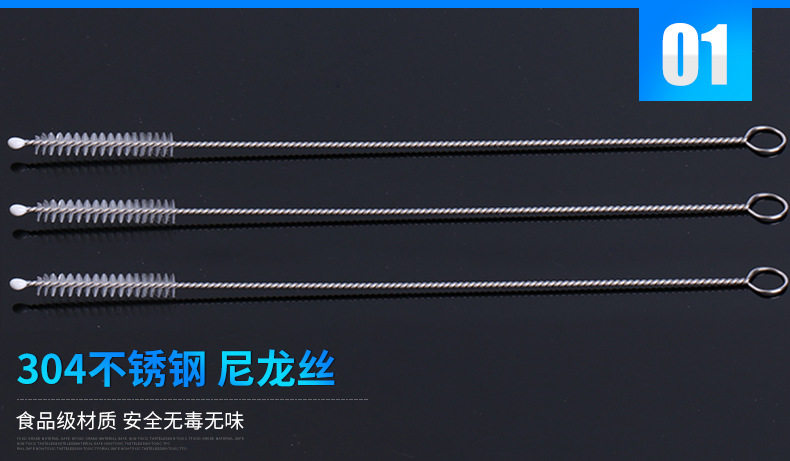Baby wash straw brush silicone bottle brush baby water cup brush extension stainless steel cleaning brush slender small brush