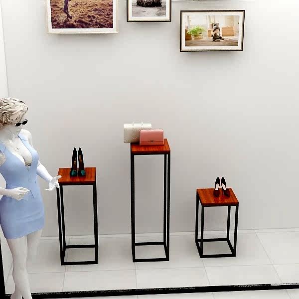 Clothing store window display stand high and low flow table wrought iron middle island stand floor-to-ceiling shoes bag display stand display cabinet