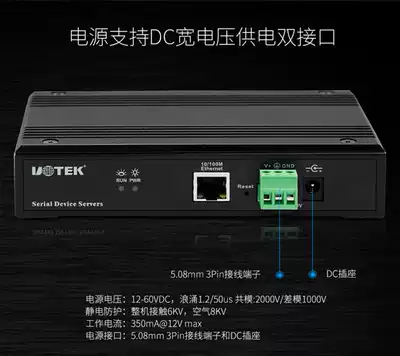 Serial Communication Server 4 ports RS-232 485 422 to Ethernet communication module Industrial grade 100 megabytes TCP IP to 4 serial port transparent transmission Yutai UT-6004