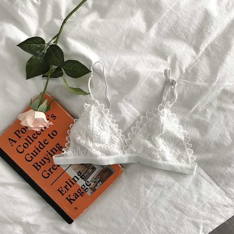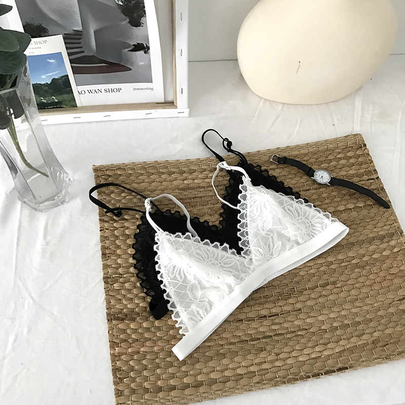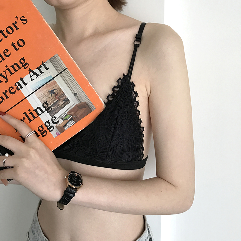 Buy one get one free Xin gang help girl lace hook flower ultra thin underwear French triangle cup bandeau strap bra woman