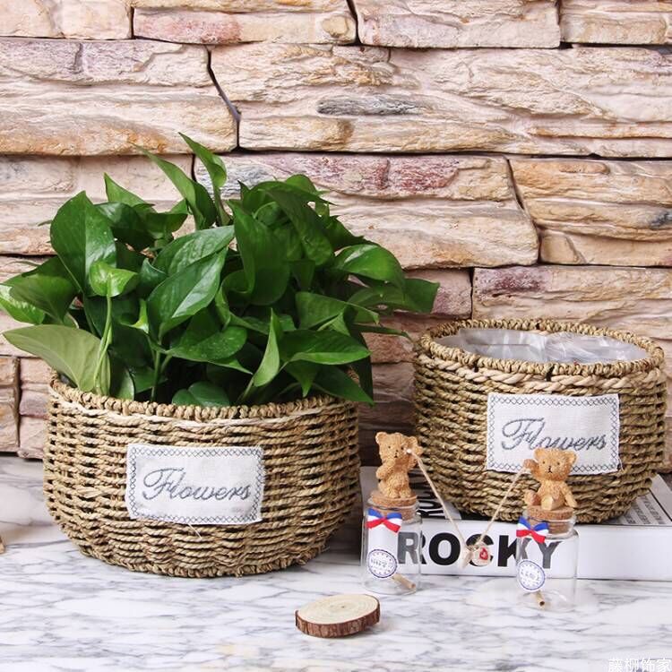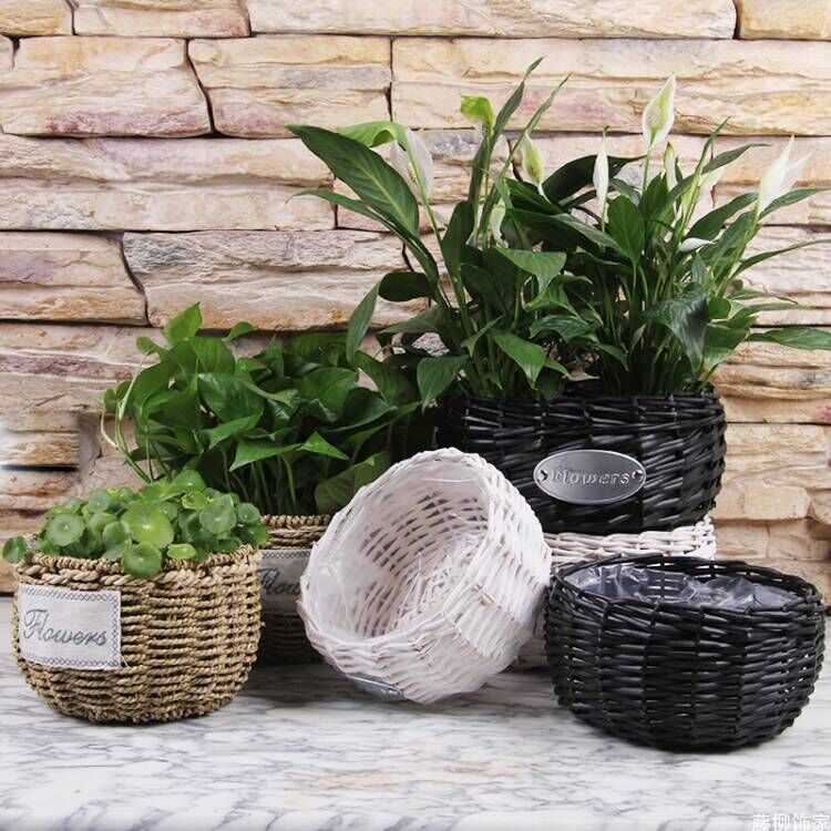 Rattan flower pot Grass woven willow woven creative flower basket woven ornaments Green plant flower arrangement Golden Ge cultivation pastoral home decoration