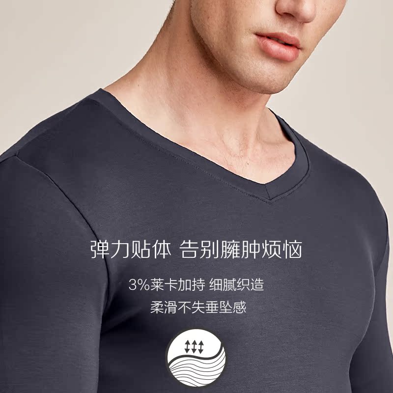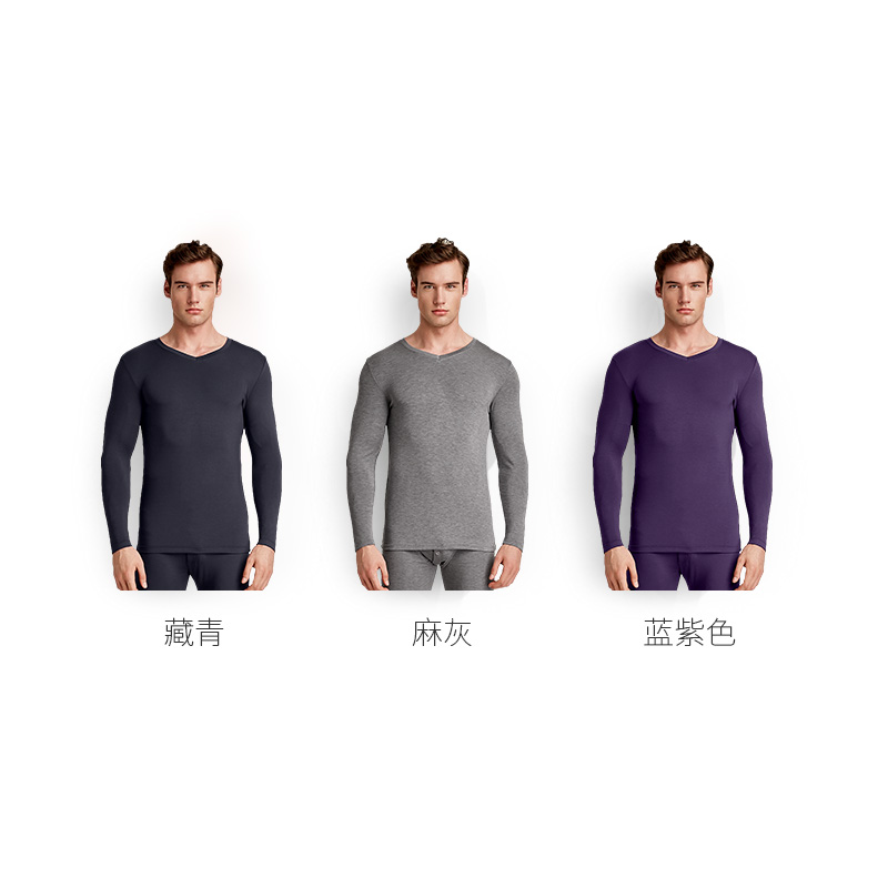 Red bean men's autumn clothes sanitary pants Modal V-neck thin slim-fit base cotton sweater base heating pants
