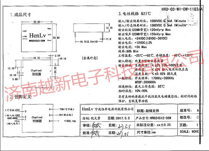DC-DC isolation voltage regulator module power supply WRD24S12-36W constant rate HenLv power supply module 24V to 12V