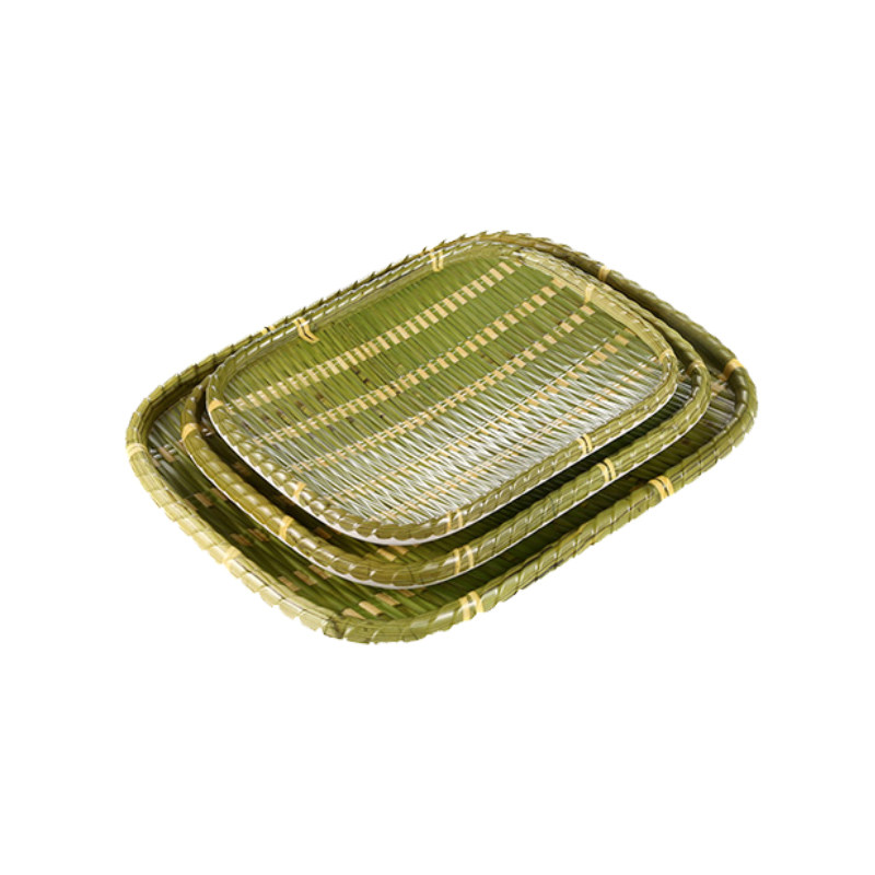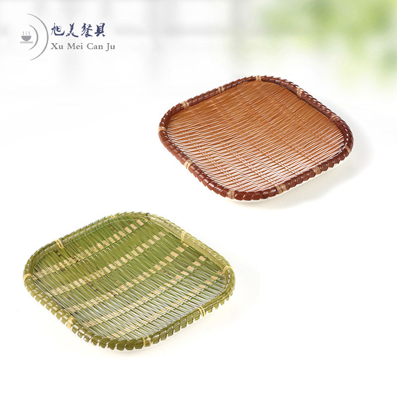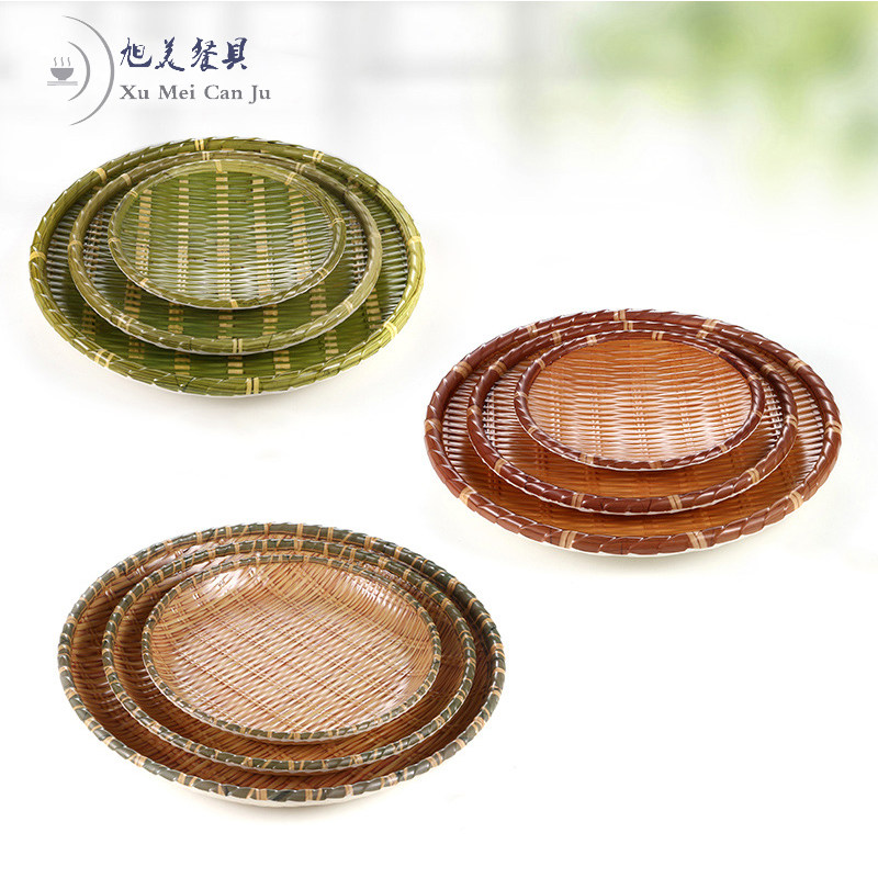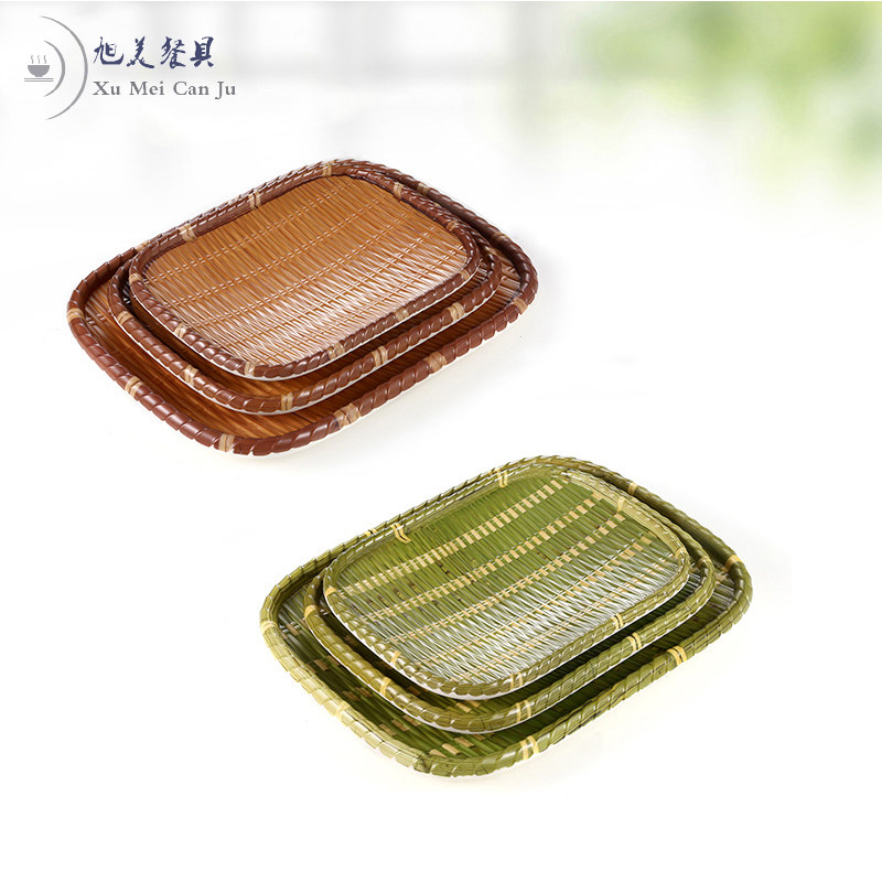 Exquisite melamine creative imitation bamboo commercial tableware bamboo woven tray barbecue bamboo plate hot pot dish dim sum rectangular disc