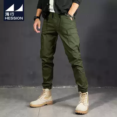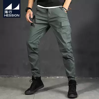 Hai Xing men's stretch sports casual pants gray toe toe tie pants Tide brand drawstring multi-bag pants