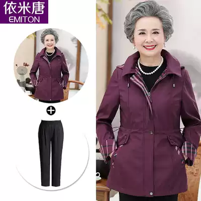 Elderly autumn clothes female grandmother coat middle-aged mother windbreaker long version thin old lady spring and autumn old clothes