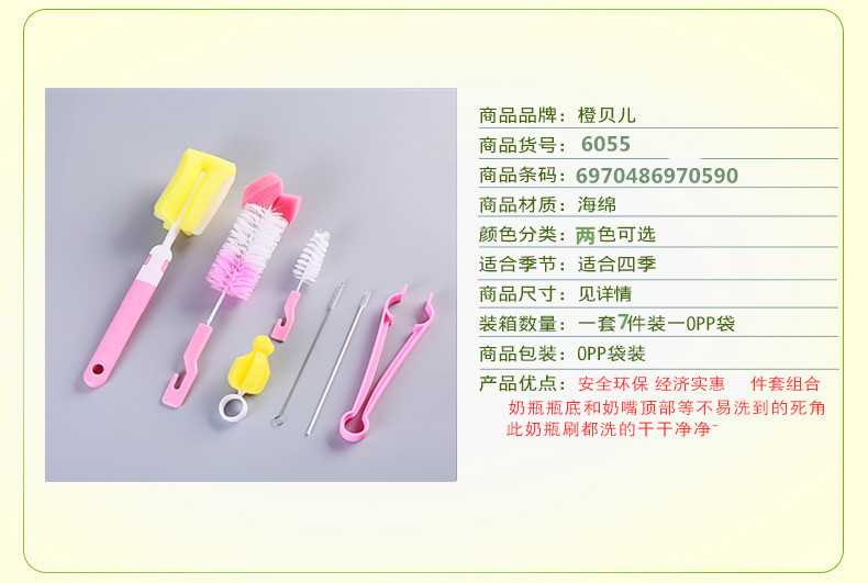 Baby Boy Milk Bottle Brush 7 Pieces Kit Straw Brushed Pacifier Brushed Baby Wash Bottle Brushed Sponge Cleaning Brush