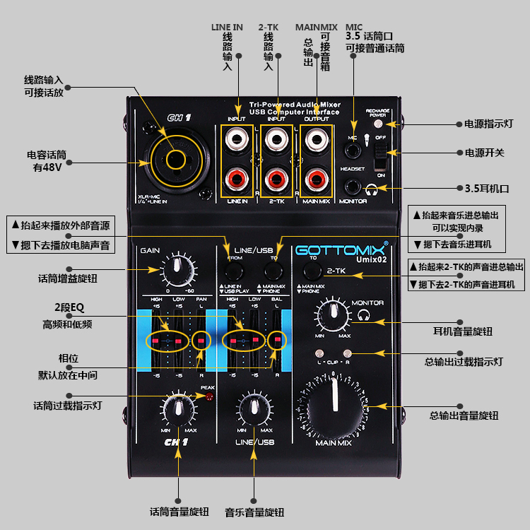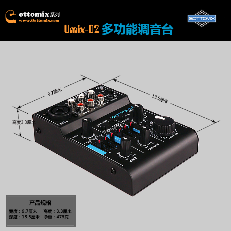 Gottomix umix-02 Charging Outdoor Mixer 48v Voice Plunge Apple Mobile Phone Live K Song Thunder Sound Card