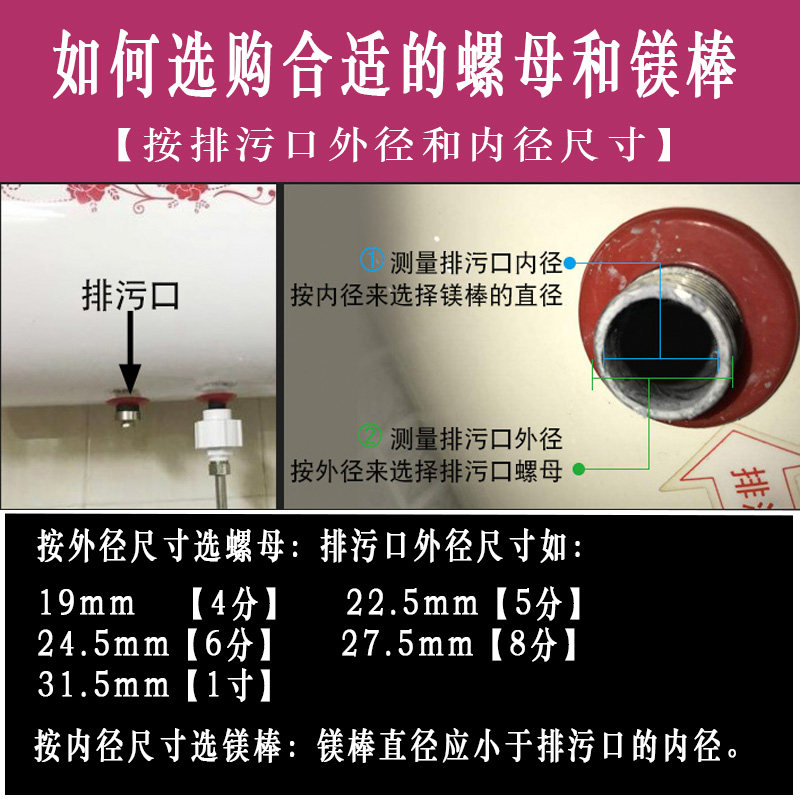 Universal major brands of water storage electric water heater magnesium rod high-purity anode rod 40 50 liters 60 80L accessories