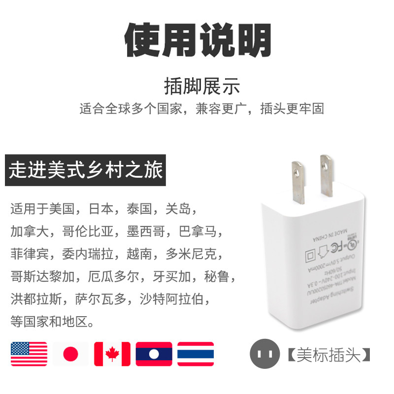 Fast 2A Universal phone charger Meigui Thailand Japan United States Canada Travel Charging ULFCC Certification