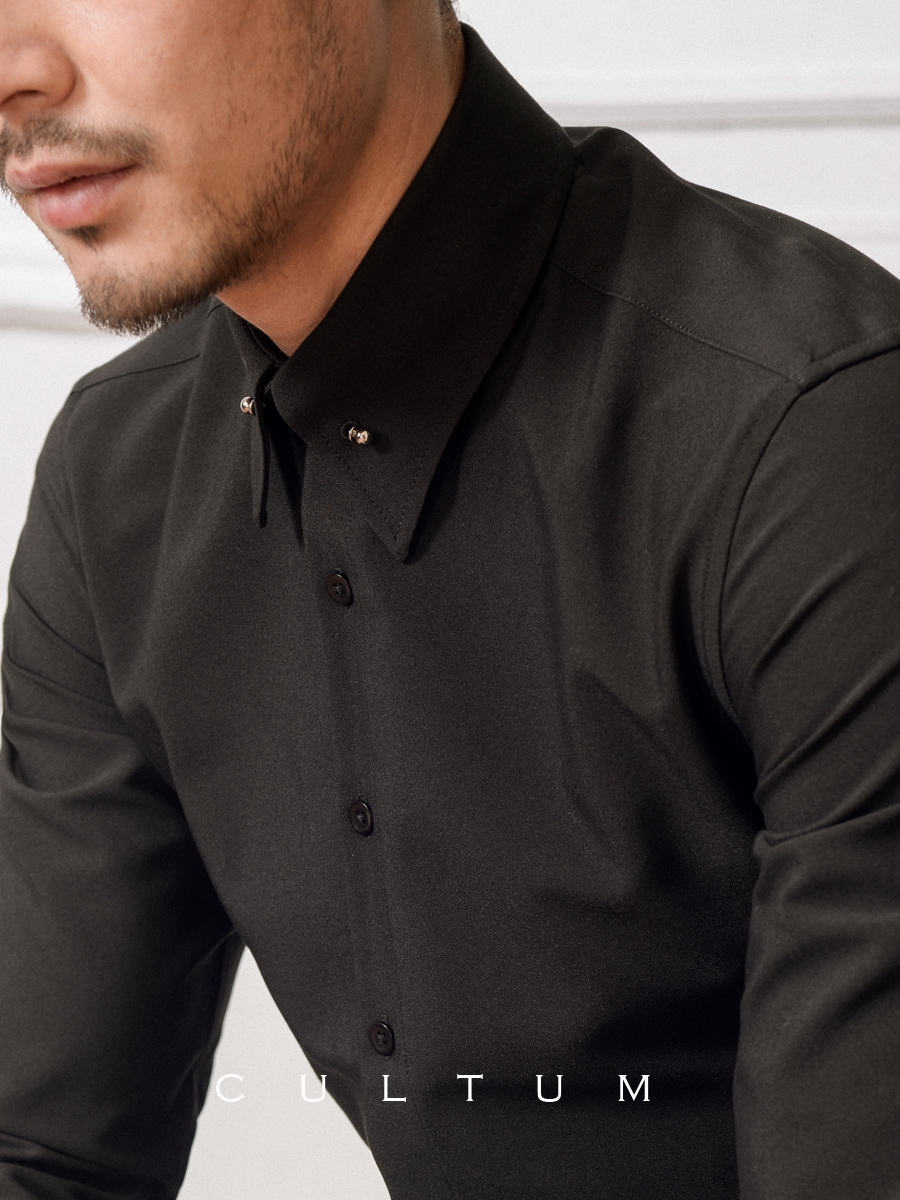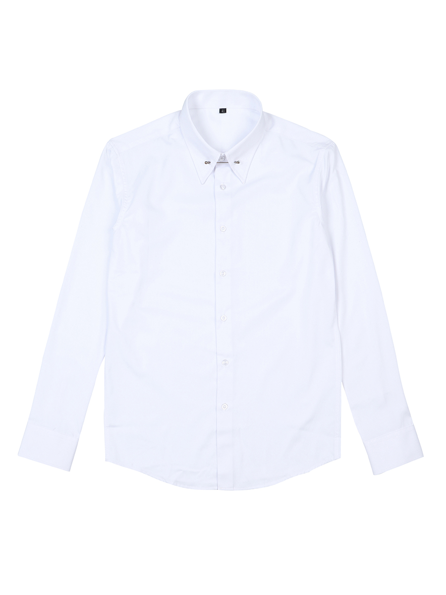 Collar needle free ironing long-sleeved white shirt Male business gentleman big pointed collar Korean slim trend black shirt