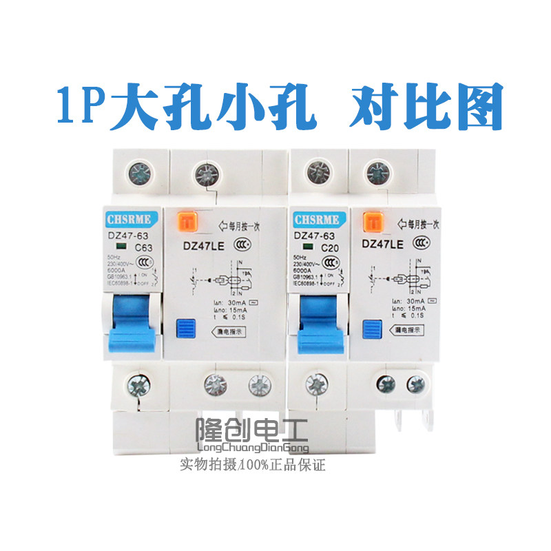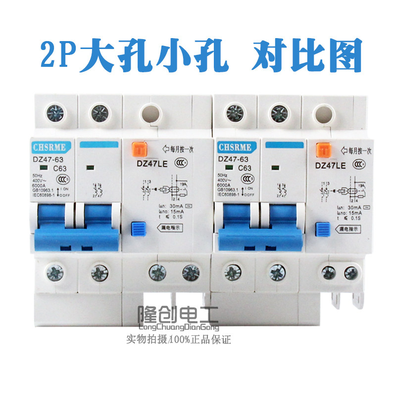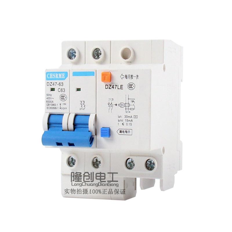 Shanghai people overload leakage switch 2P63A household large hole short - circuit belt leakage protector empty breaker