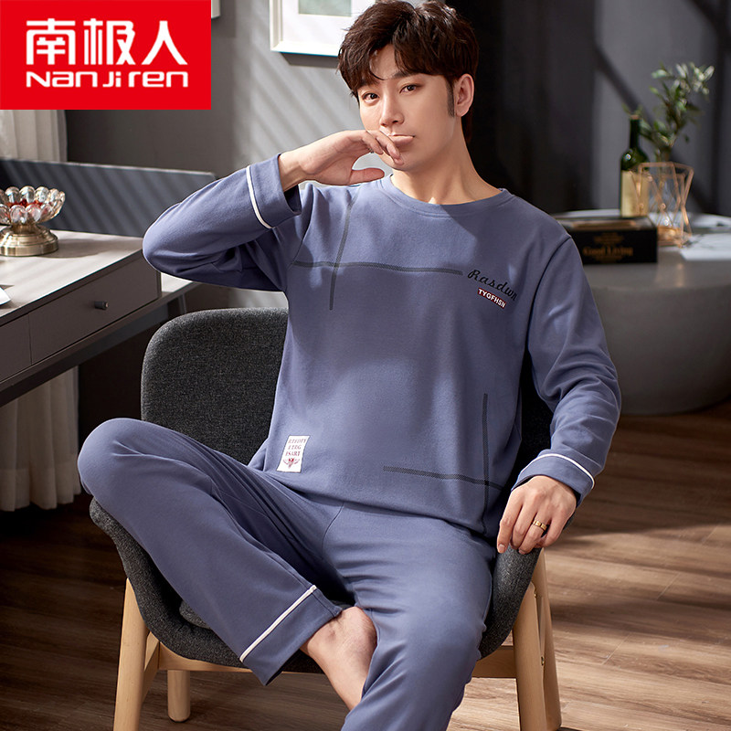 Antarctic men's pajamas autumn and winter pure cotton long-sleeved youth spring and autumn large size cotton loose home wear suit